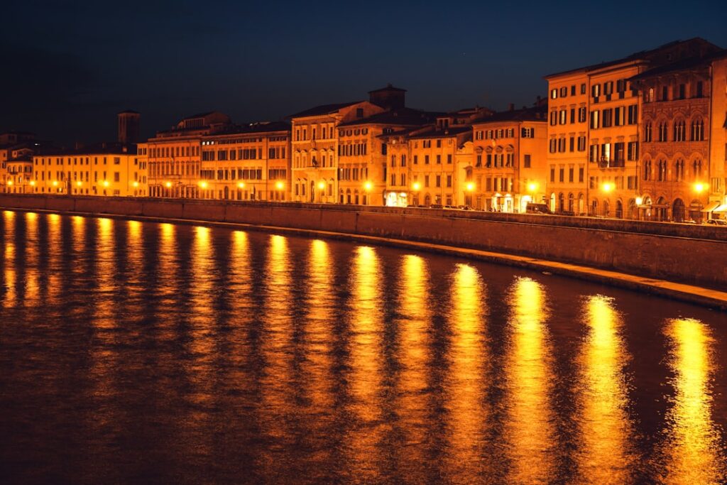 • 22:00 — Promenade le long de l’Arno : après la visite, descendez vers le Lungarno Pacinotti et Lungarno Mediceo pour une balade romantique et des vues nocturnes sur les ponts. Beaucoup de cafés restent ouverts tard et l’atmosphère y est plus intime que sur la Piazza del Duomo.